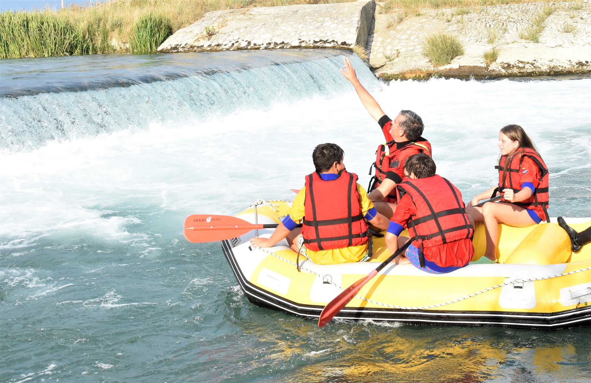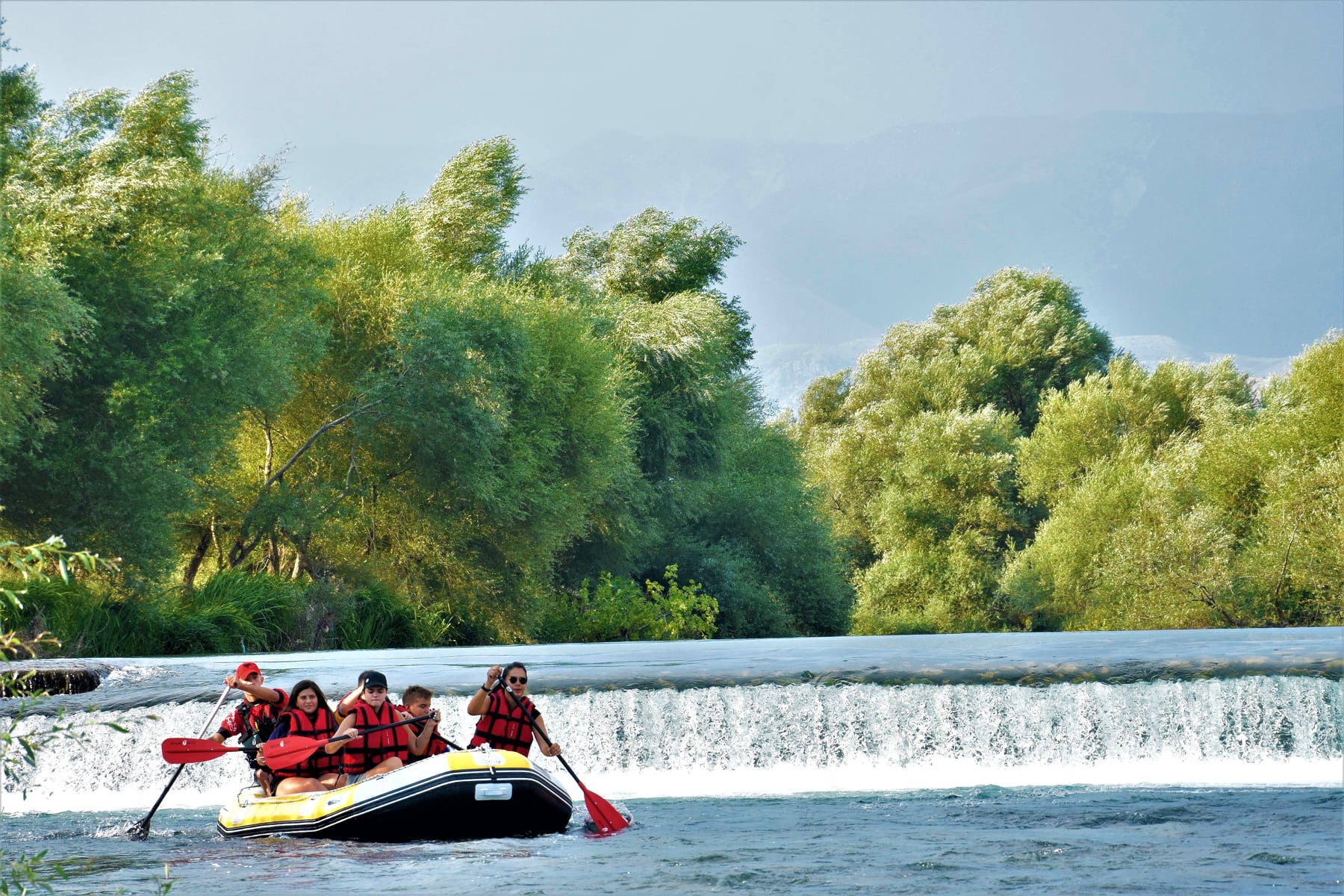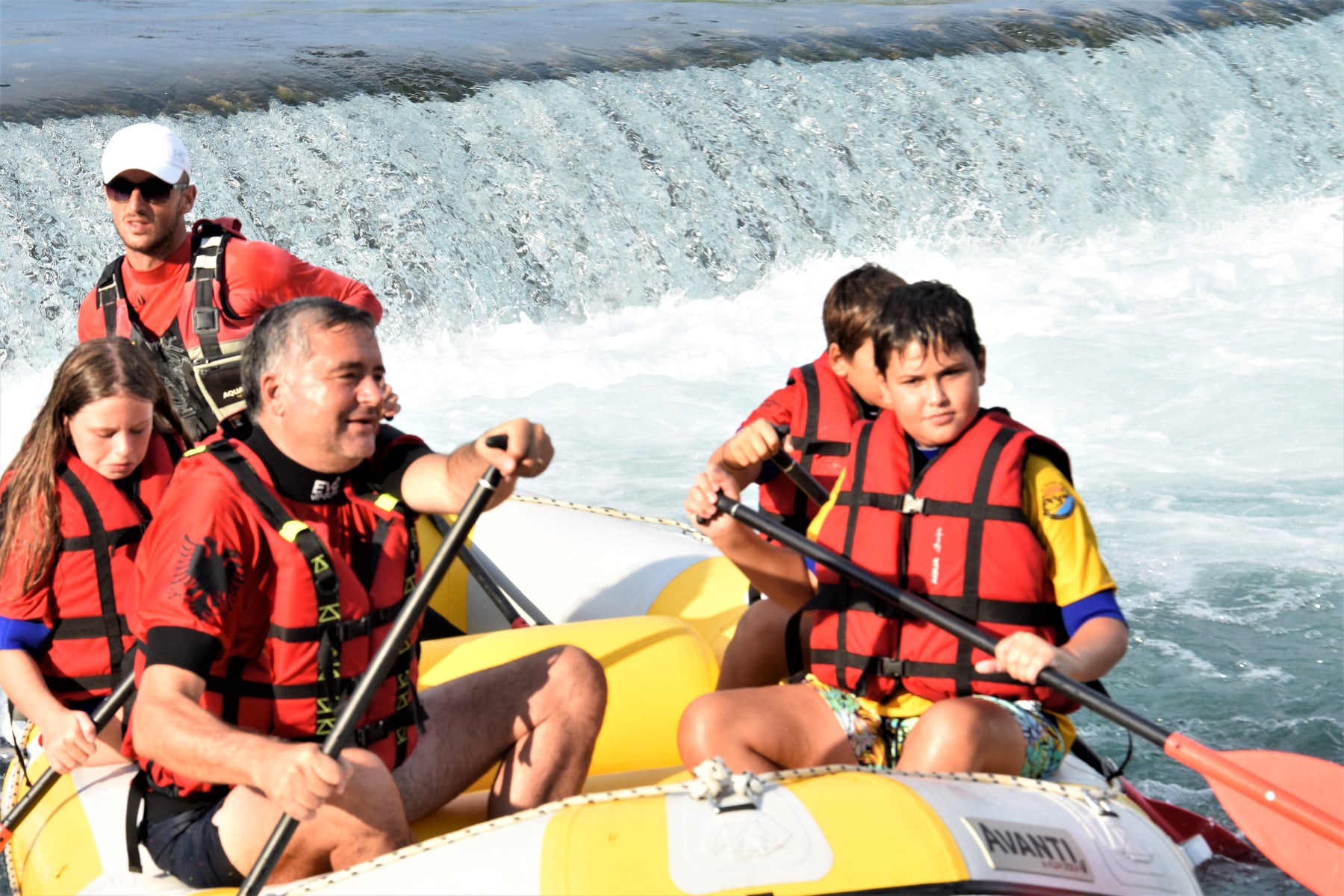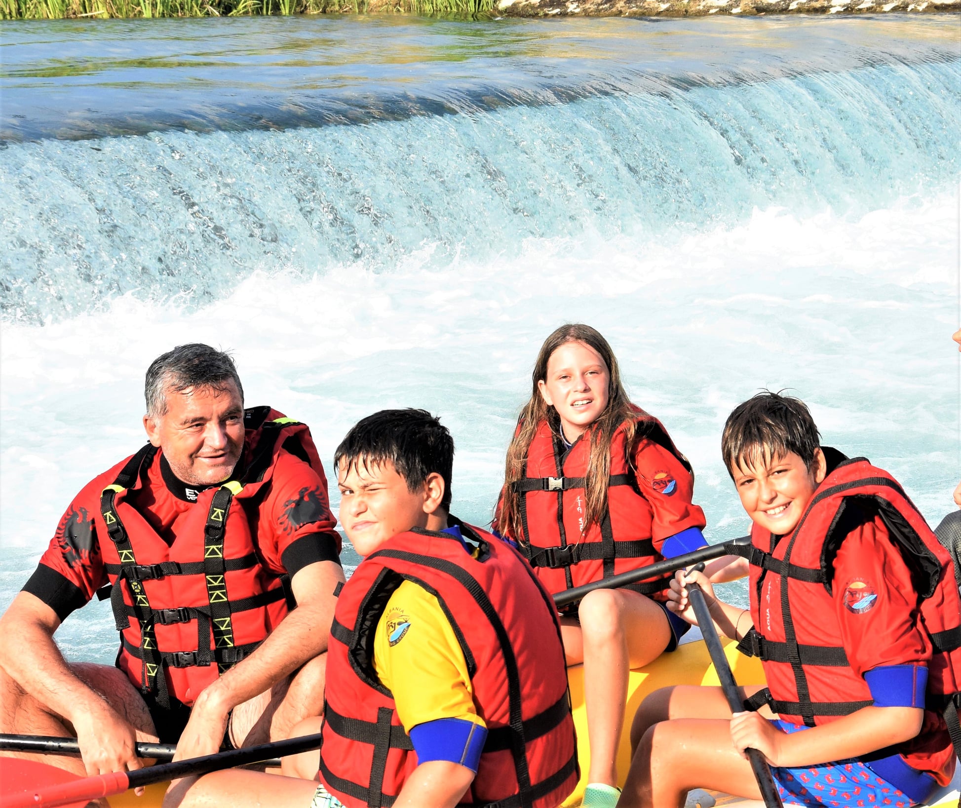 Ministri i Turizmit dhe Mjedisit Z.Blendi Klosi së bashku me djalin e tij Aron dhe miq e mikesha të tij bëjnë rafting në lumin Bistrica në Sarandë me skuadrën e Albania Rafting Group.