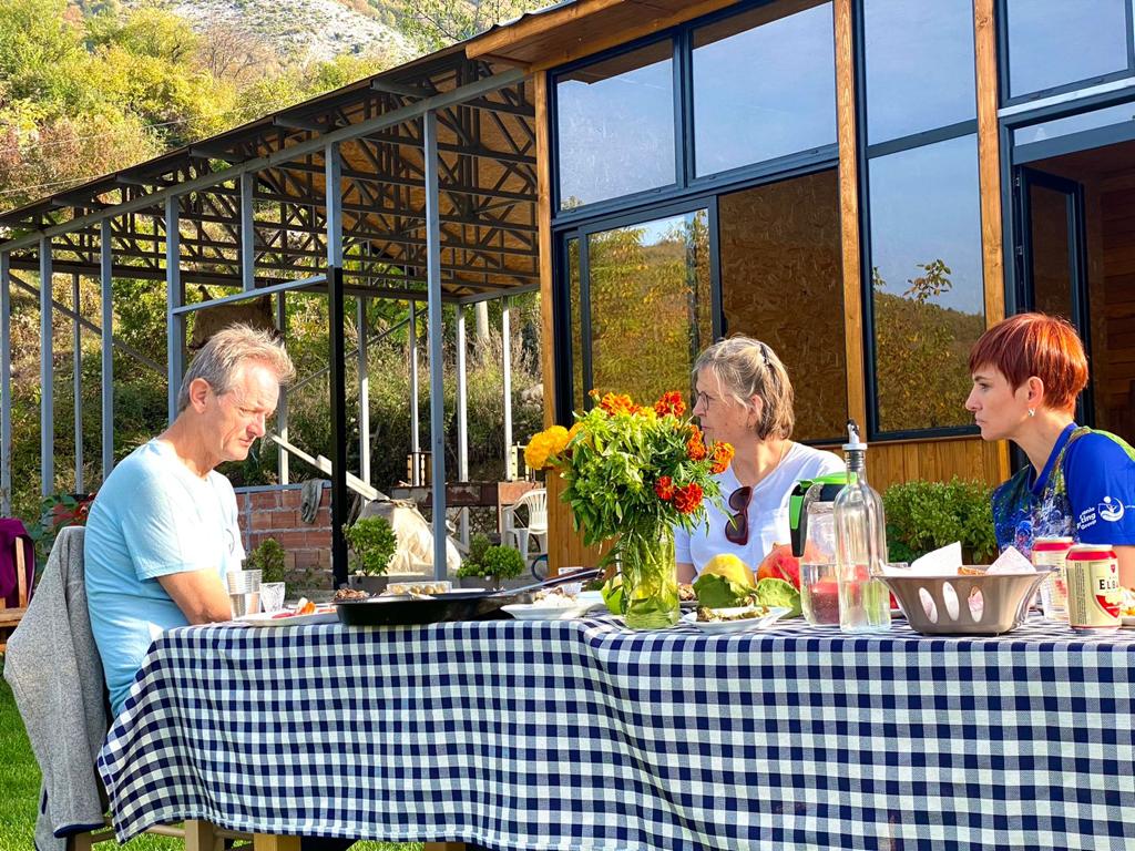 Udhëtimin e tyre e bënë edhe më të bukur takimi me banorët e zonës si Niku i cili me mushkën e tij na shoqëroi gjithë udhëtimin.Drekën e ofroi Baftjari dhe bashkeëshortja e tij Lela te cilët pas 25 vitesh emigrim neë Greqi u rikthyen në fshatin e tyre të lindjes “Qafë Dardhë” ku shërbejnë ushqimin e fshatit dhe e kanë kthyer shtëpinë e tyre në Guesthouse e parë ne fshat.