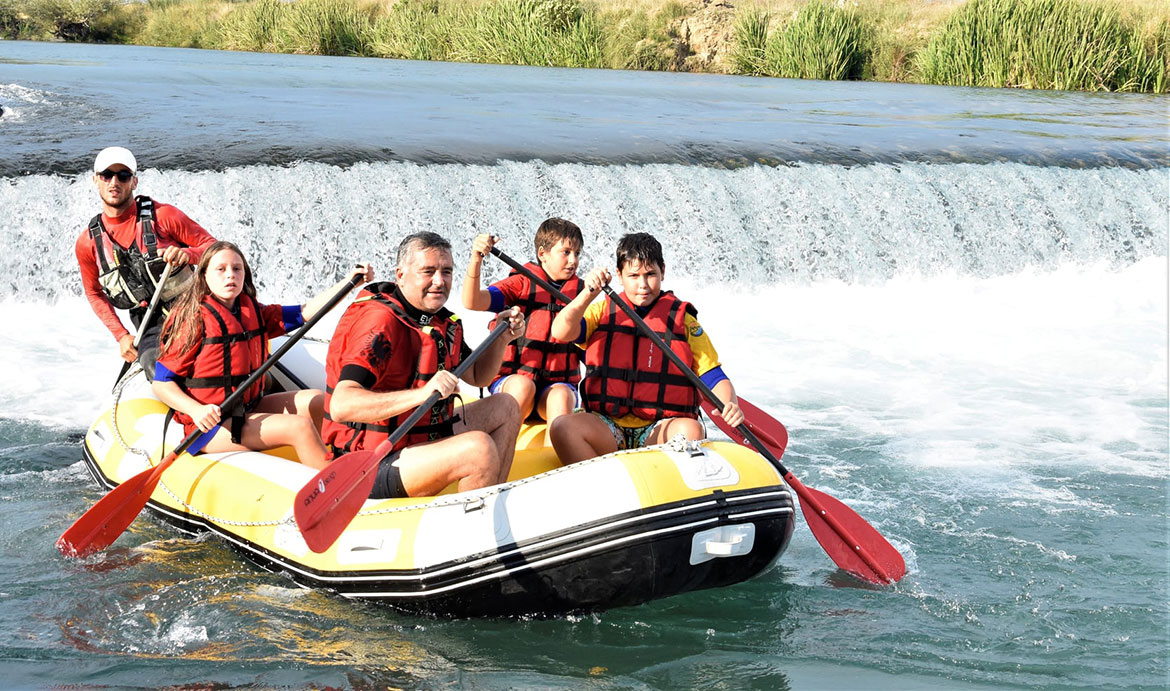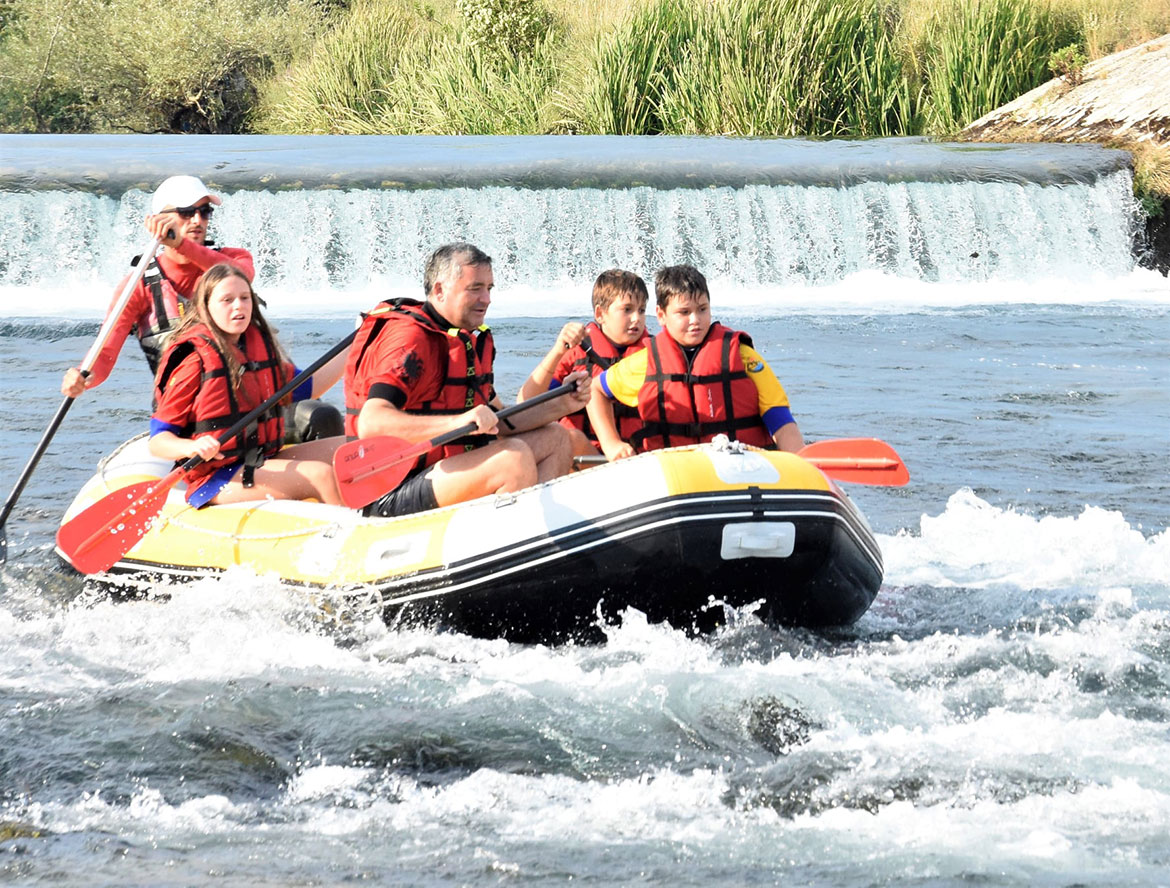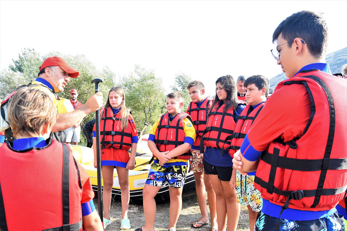 Ministri i Turizmit dhe Mjedisit Z.Blendi Klosi së bashku me djalin e tij Aron dhe miq e mikesha të tij bëjnë rafting në lumin Bistrica në Sarandë me skuadrën e Albania Rafting Group.
