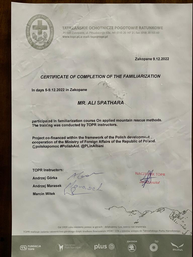 Ali Spathara, member of the Albanian Rafting Federation, was part of the project co-financed by the Polish development cooperation of the Ministry of Foreign Affairs of Poland, Ych RP.