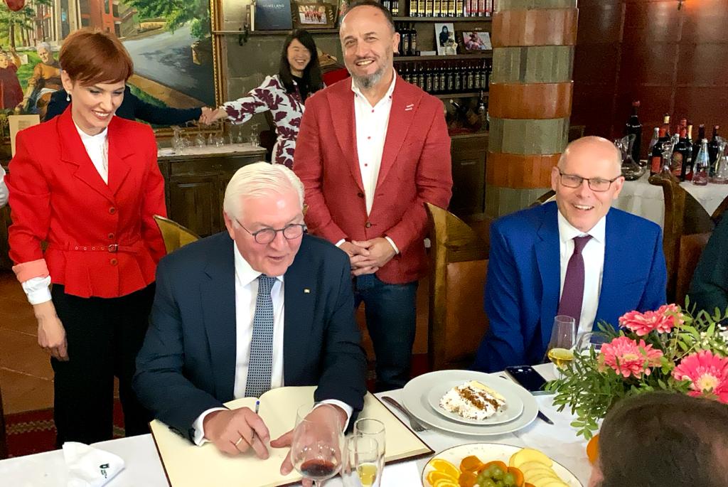 "I couldn't end my visit to the Western Balkans better than here in Berat", the German president marvels at the cuisine and the city of one window.
