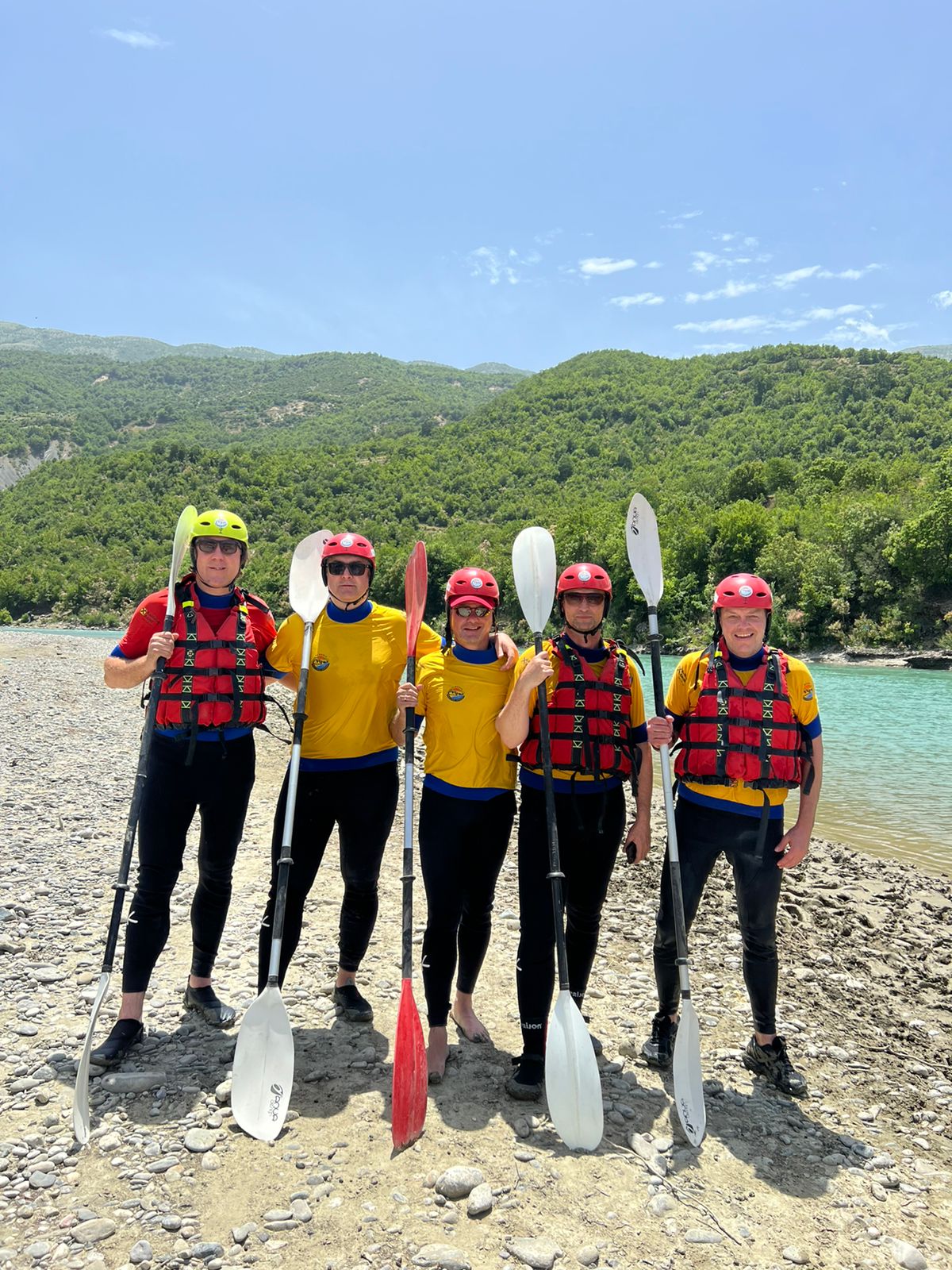 Preparing for the adventure, wearing neoprene suits, thermal sweatshirts, life jackets and helmets it’s a must. Getting instructions from Albania Rafting Group experienced guide team members which is the first Sport team to bring rafting to Albania for the very first time and still going strong.